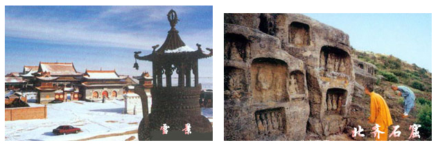 石佛嶺:在白馬寺山后約1公里多的山崖上,有一處摩巖造像群,古稱石佛嶺。據(jù)史料記載,原有造像500余尊。傳說一和尚,為了搞清佛像的數(shù)量,數(shù)了十多遍,每次都不一樣,不得已,他用了三天的時間將每尊像都貼上編號,才總算得以數(shù)清。由于各種原因,石佛嶺造像破壞較大,現(xiàn)僅存30余龕,90余尊,以北齊造像為多,有少量的唐寧元造像,還有幾尊似為明、清遺物,十分珍貴。