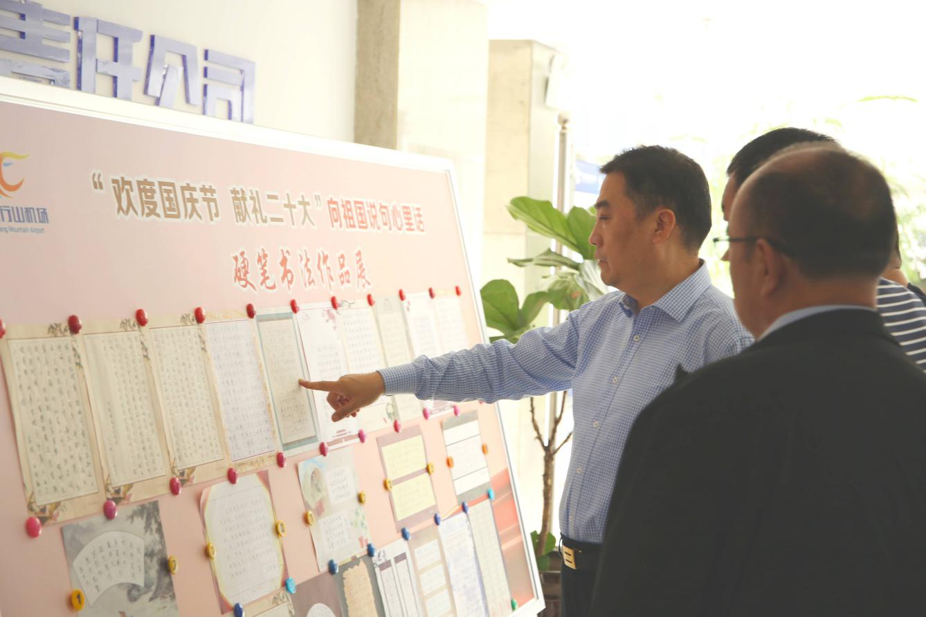 丹青書盛世,翰墨頌黨恩。在偉大祖國73周年華誕即將到來之際,為勉勵公司全體人員勇?lián)鷷r代重任、共譜時代華章,9月28日上午,晉城民航機場有限責任公司黨支部舉辦了“歡度國慶節(jié) 獻禮二十大”向祖國說句心里話硬筆書法比賽活動。