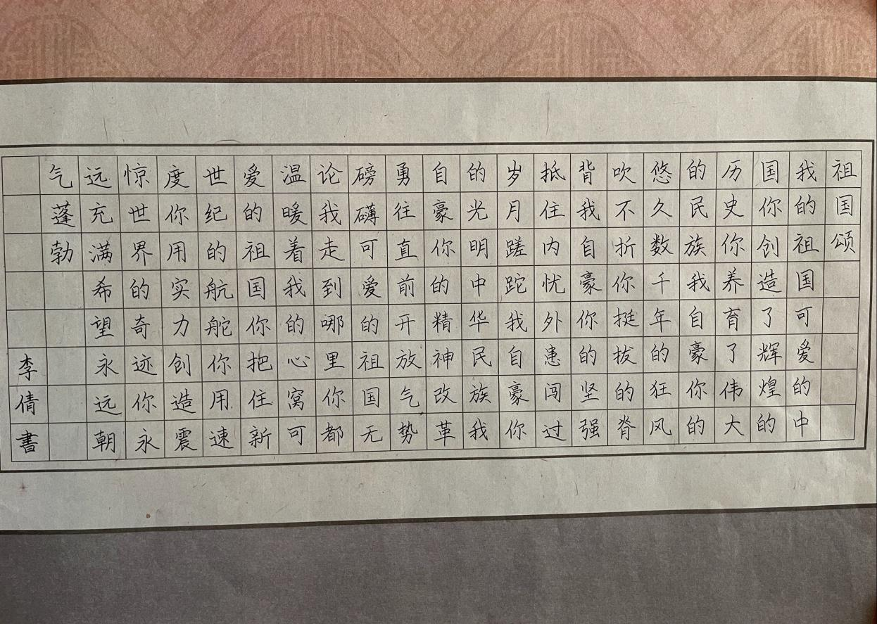 此次活動得到了全體人員的積極響應與支持,共收到作品30副,他們字體不一、各具特色、形神兼?zhèn),或蒼勁有力,或雋永飄逸,或清秀雅致,或端正整潔………筆走龍蛇之間蘊含了全體人員對祖國母親的熱愛、對偉大祖國的深深祝福。經(jīng)專業(yè)、公正評審,評出一等獎一名,二等獎兩名,三等獎三名。