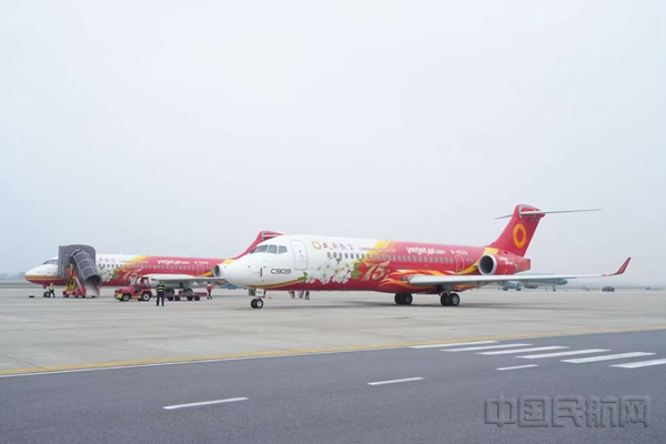 國產(chǎn)C909濕租給越捷航空后,投入越南國內(nèi)航線運行(中國商飛及成都航空供圖)