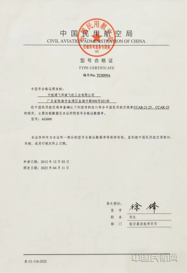 《中國民航報》、中國民航網(wǎng) 記者楊群峰 報道:輕舟已過萬重山,風勁揚帆正當時。4月20日,我國首次按照中國民航適航規(guī)章完全自主研制的AG600飛機在京獲頒中國民航局型號合格證,標志著全球起飛重量最大的民用水陸兩棲飛機通過了嚴格測試和驗證,研制取得圓滿成功,獲得市場“準入證”。