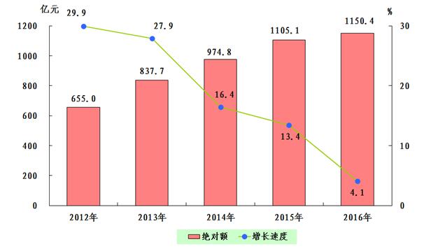 圖7:2012-2016年外貿(mào)進(jìn)出口總額及增長速度