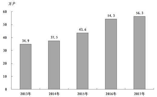 圖8:2013-2017年全市寬帶接入用戶