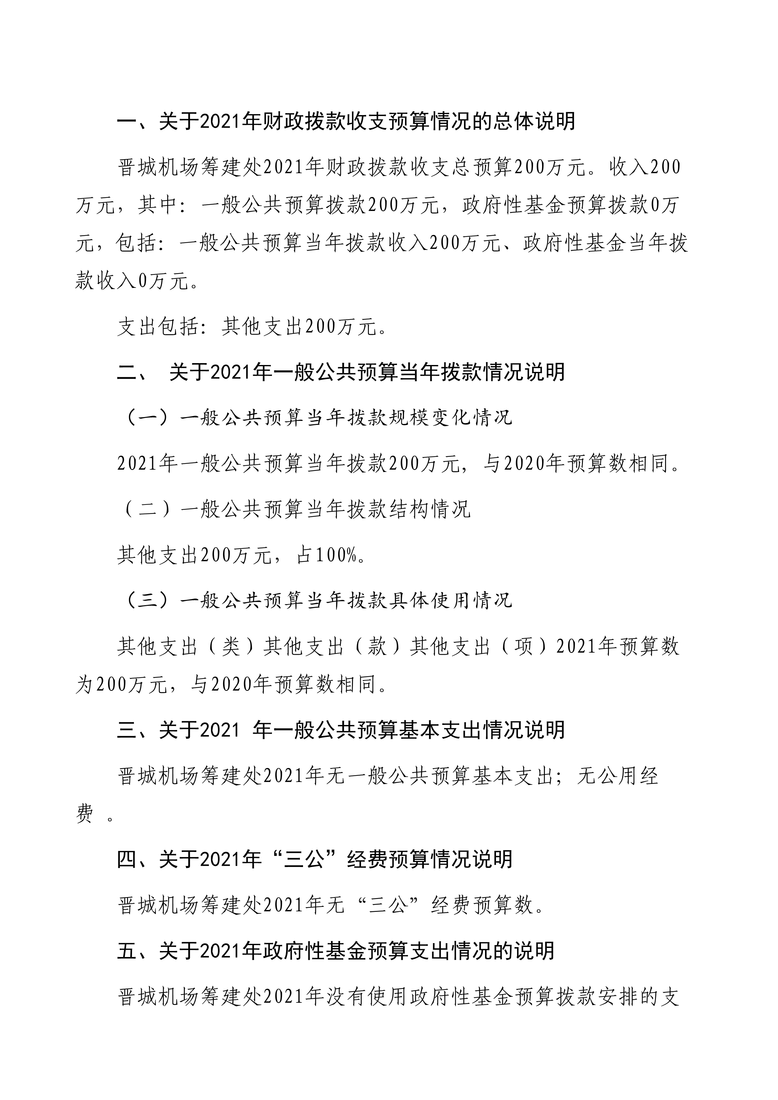 晉城機(jī)場(chǎng)籌建處2021年度預(yù)算公開(kāi)