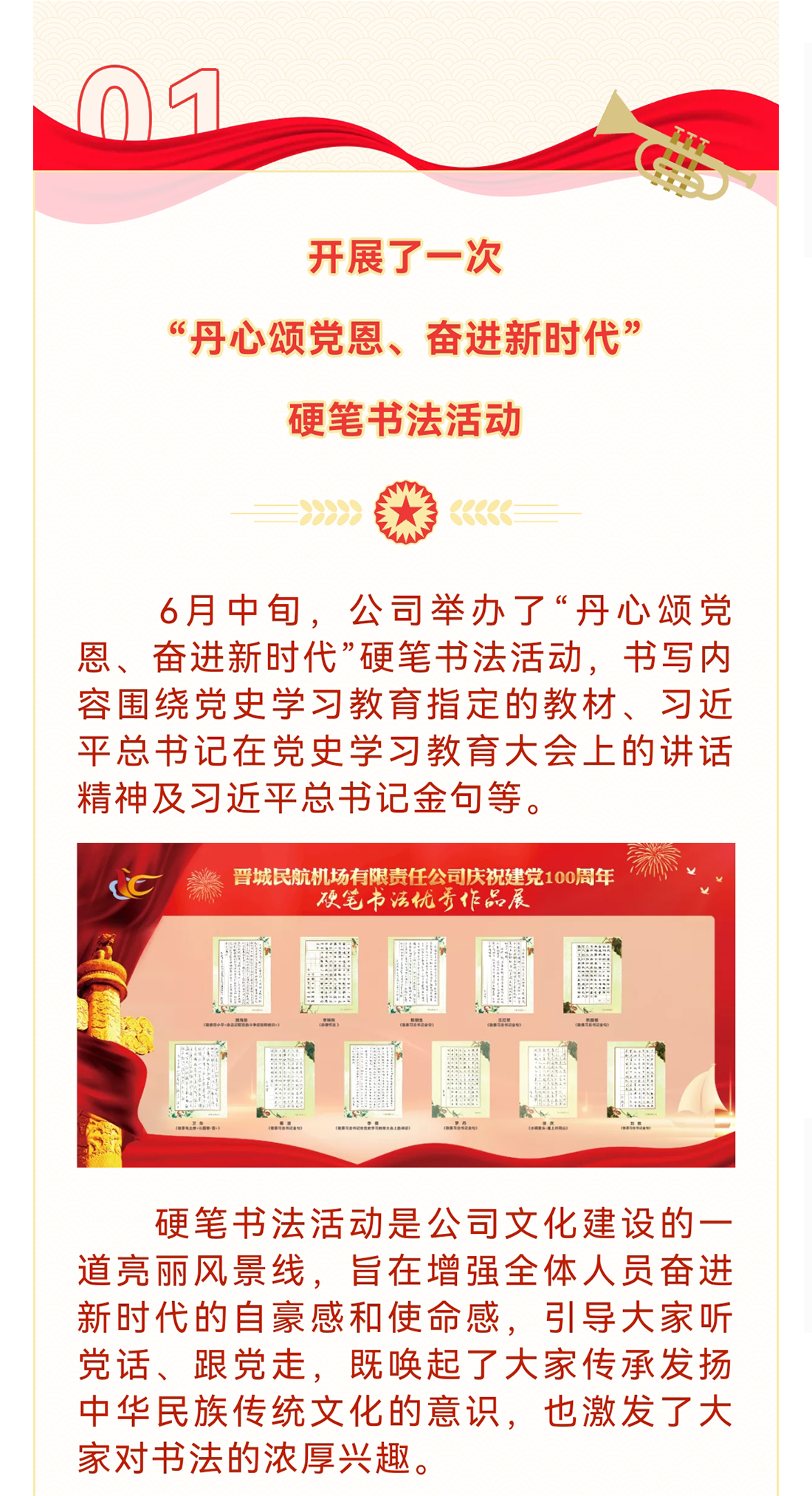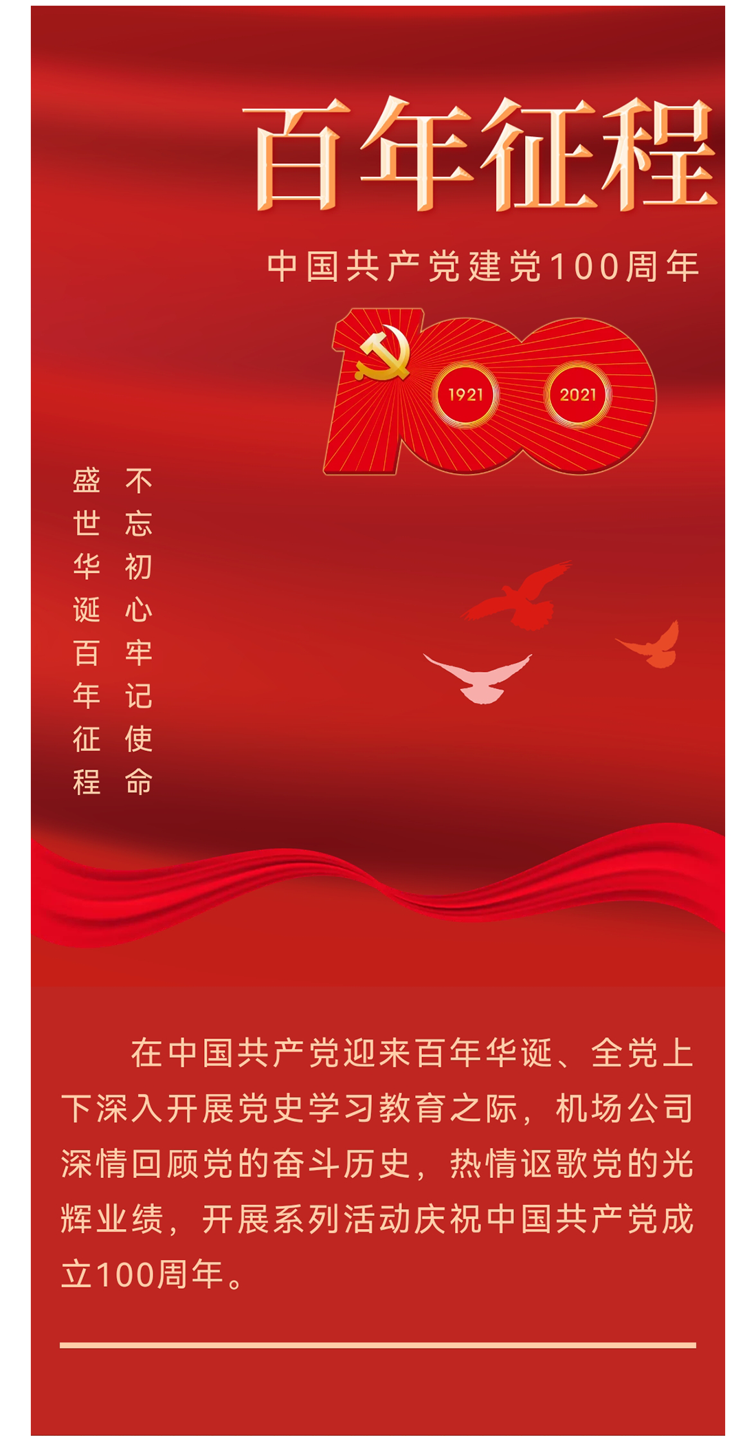 在中國共產(chǎn)黨迎來百年華誕、全黨上下深入開展黨史學(xué)習(xí)教育之際,機(jī)場(chǎng)公司深情回顧黨的奮斗歷史,熱情謳歌黨的光輝業(yè)績,開展系列活動(dòng)慶祝中國共產(chǎn)黨成立100周年。