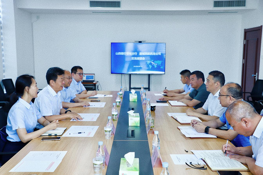 7月11日上午,山西銀行晉城分行行長張建國一行與機場公司舉行交流座談會議,了解機場進展和投資建設(shè)模式,雙方就銀企合作等方面進行了深入交流。