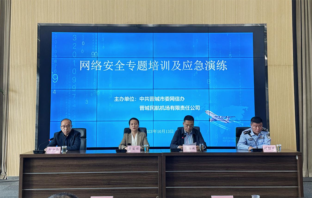 市委宣傳部副部長、網(wǎng)信辦主任賈苗麗對本次專題培訓和應急演練高度肯定,表示今后將繼續(xù)關注機場公司網(wǎng)絡安全工作,堅持“萬無一失,一失萬無”的底線思維,持續(xù)加強機場公司網(wǎng)絡安全防線指導力量,確保網(wǎng)絡信息系統(tǒng)安全平穩(wěn)運行,助力晉城機場早建成、早通航。