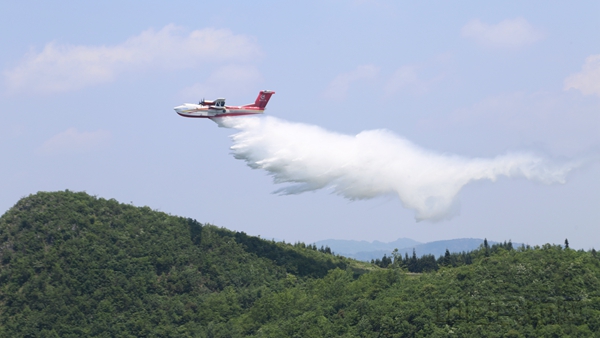 2023年6月,AG600飛機在四川西昌開展典型滅火場景驗證試飛科目